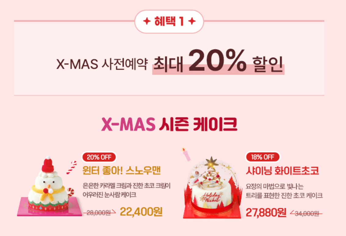 다가오는 크리스마스를 더욱 특별하게 만들어줄 사랑이 가득 담긴 달콤한 크리스마스 케이크를 미리 예약하세요!! 🎄🎅 연인, 가족, 친구와의 소중한 그 시간들을 더욱 빛나게 해 줄 거예요. 🎄