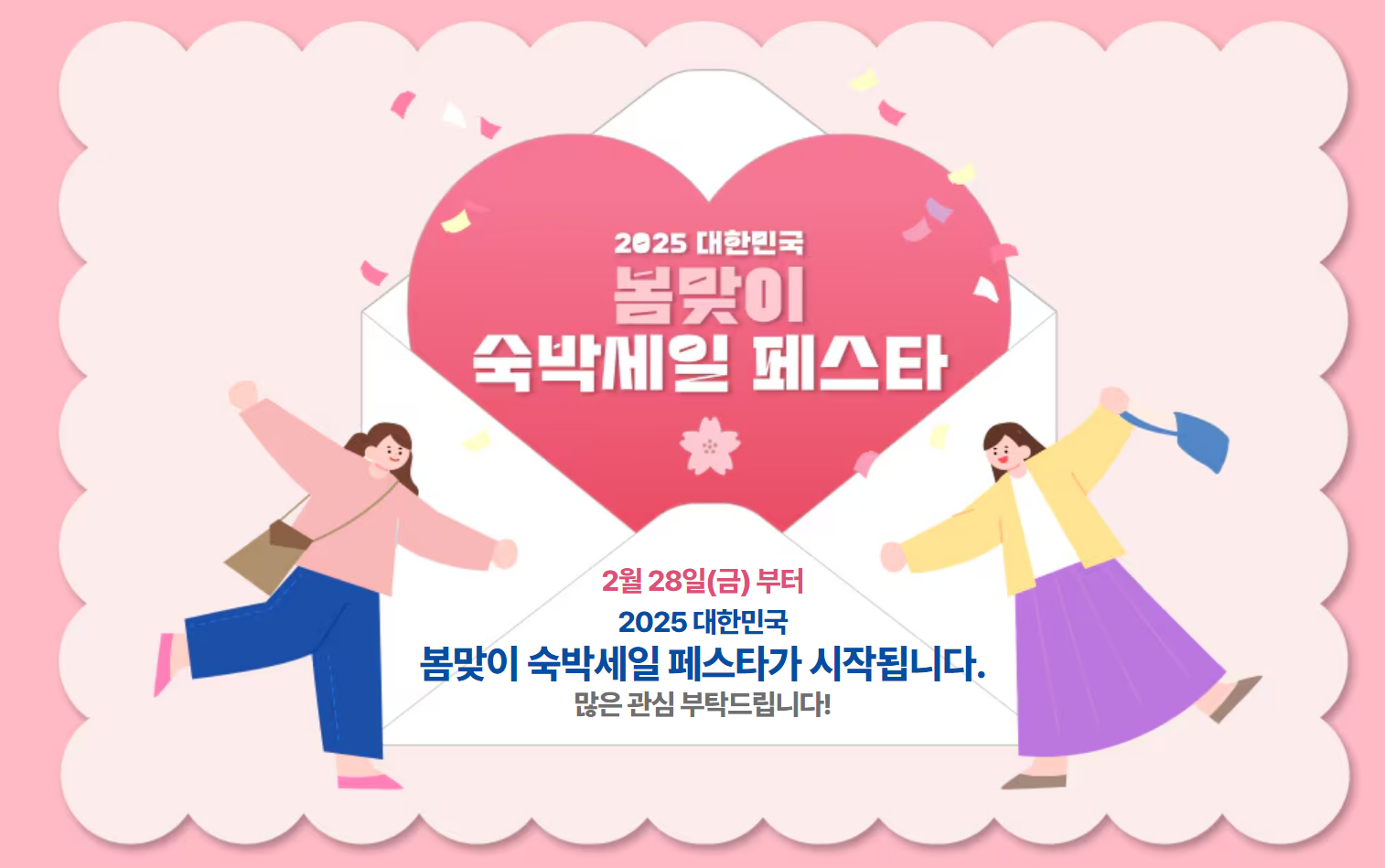 2025년 봄맞이 숙박할인권은 28일부터 30만 장을 매일 오전 10시부터 선착순 1인 1매씩 42개 온라인 여행사를 통해 발급받으실 수 있고요, 준비된 수량이 모두 소진되면 바로 종료되니 빠르게 신청하시기 바랍니다.