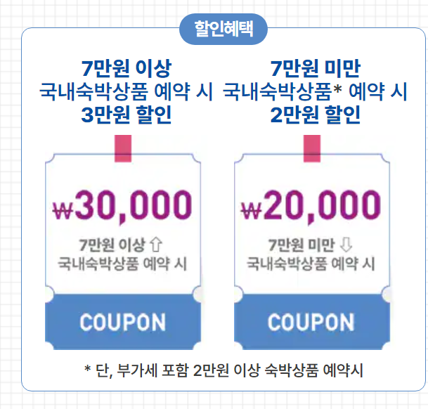 ✅ 7만원 이상 국내 숙박상품 예약 시에는 3만 원 할인권.