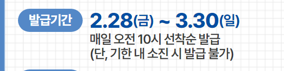 28일부터 매일 오전 10시 1인 1매씩 선착순으로 발급한다고 하니 즐거운 여행 계획 있으신 분들은 서둘러 주세요.
