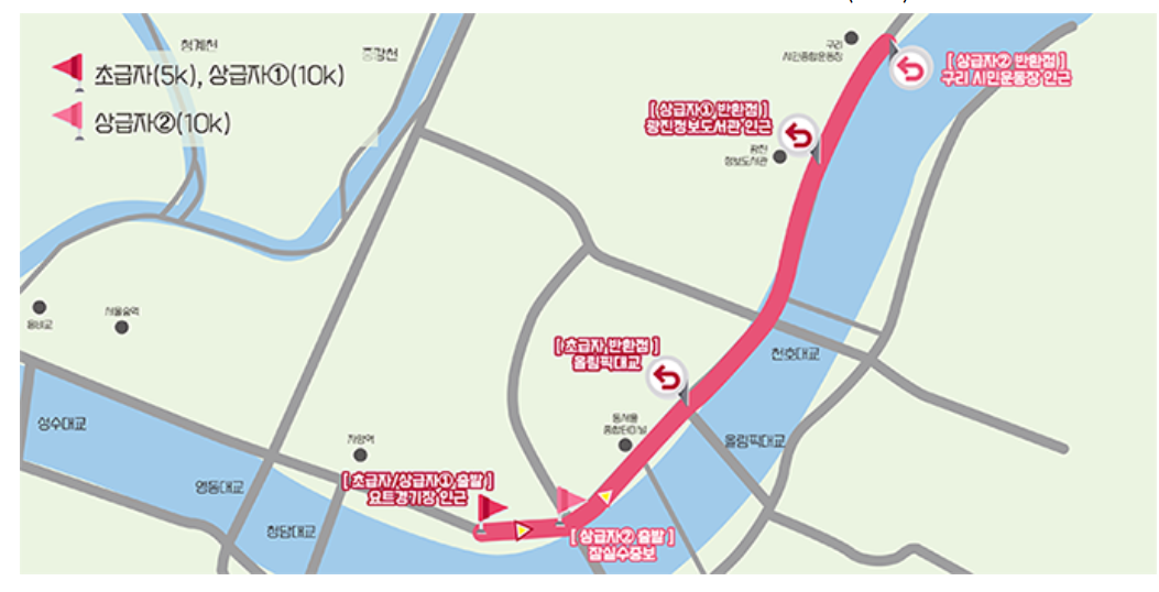 ● 초급자 10km - 수변무대 인근 ~ 중랑천교 ~ 용비교(반환)