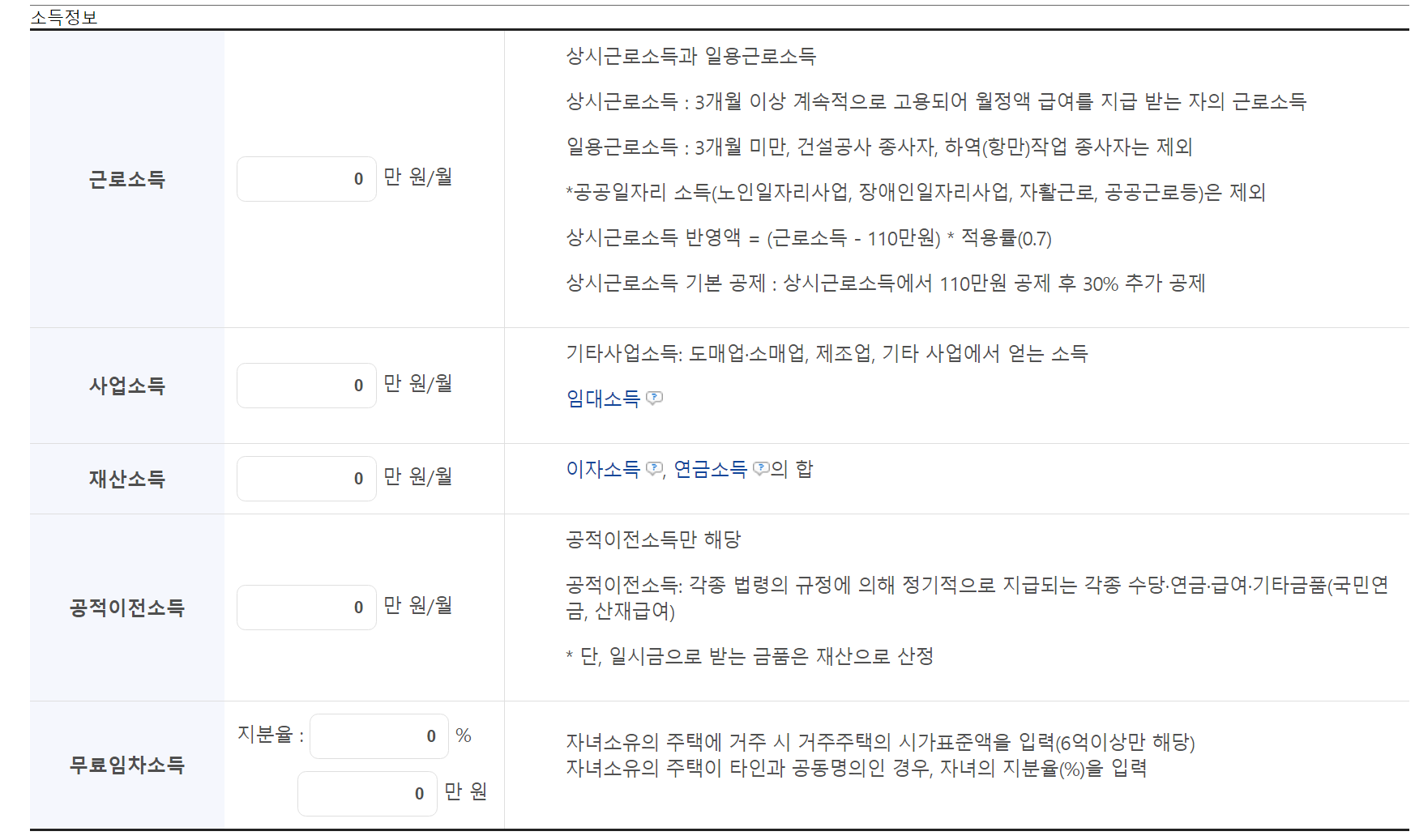 주택시가표준액 | 무료임차소득 |