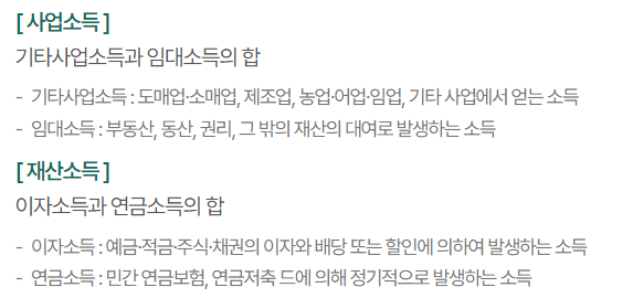 ● B. 기타 소득 : 사업소득, 재산소득, 공적이전소득, 무료임차소득.