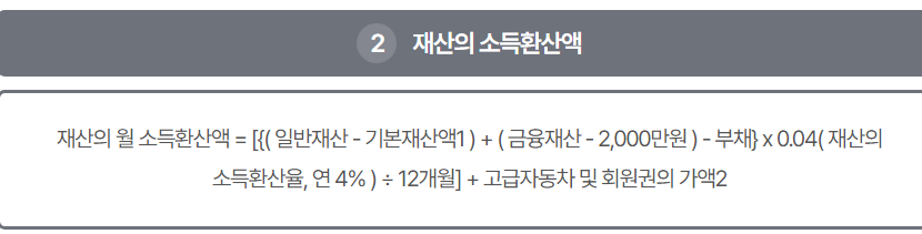소득인정액은 다음과 같은 방법으로 산정됩니다.